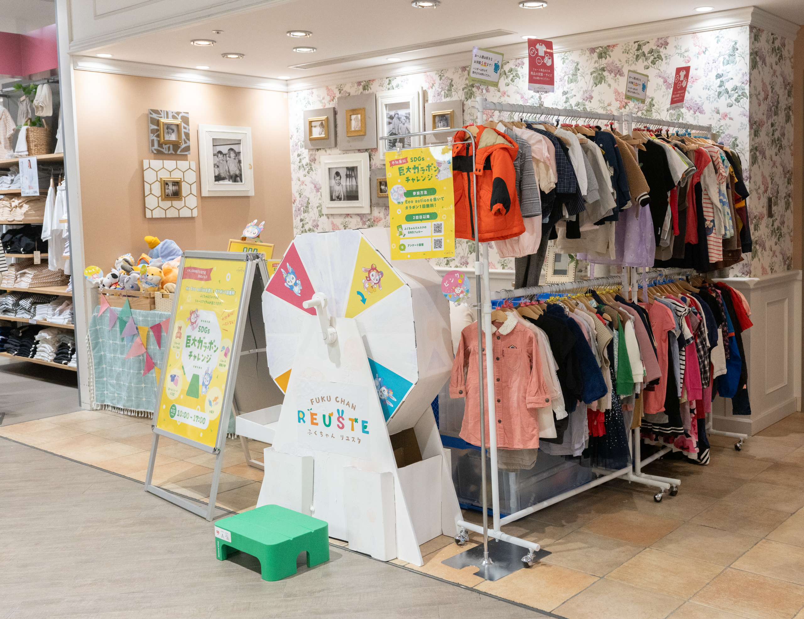 SDGs巨大ガラポンにチャレンジすると、こども服・ぬいぐるみ・服飾小物などのリユースアイテムがもらえます!💝